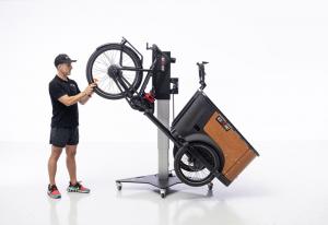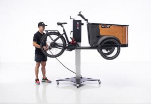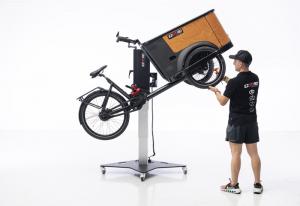 Le Cargo Bikelift d'Ezoord est conçu pour soulever, déplacer et faire pivoter sans effort les vélos cargo, les tricycles électriques et les vélos de grande taille.